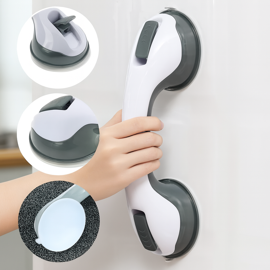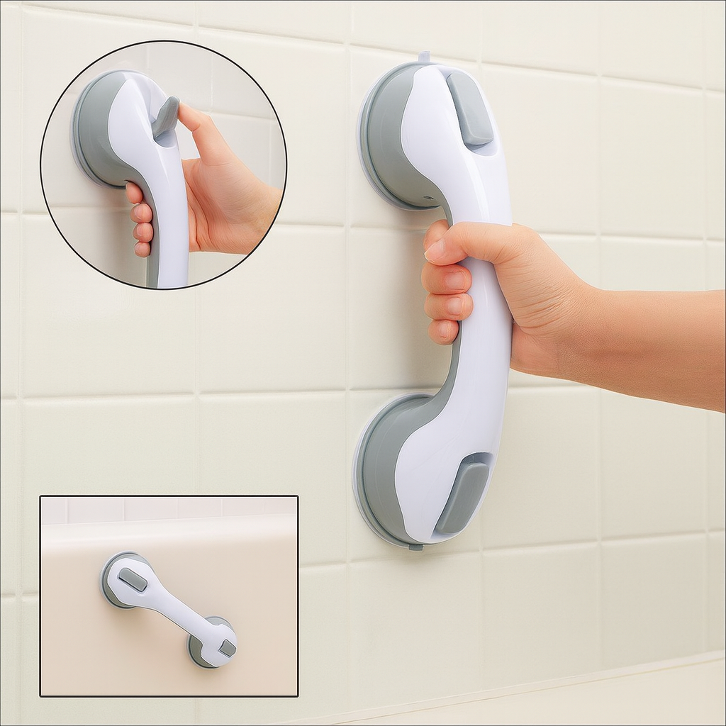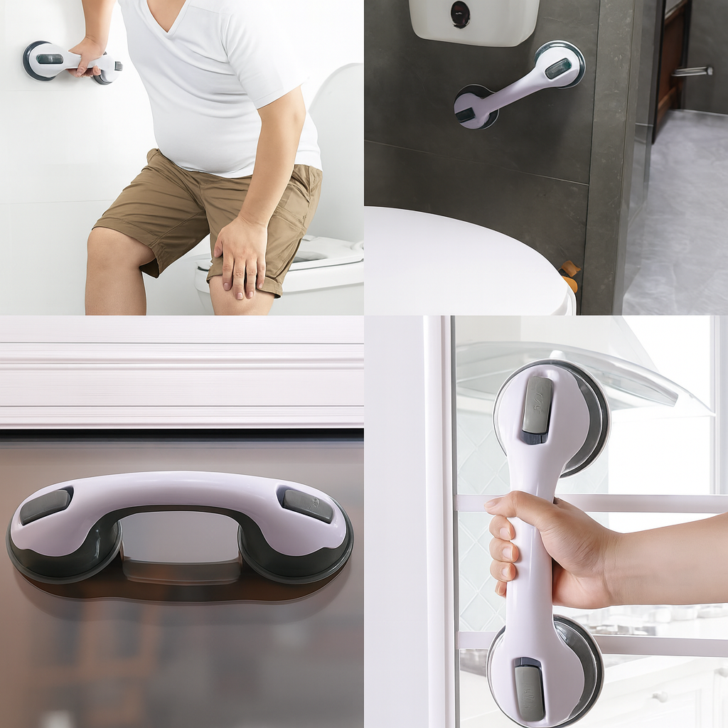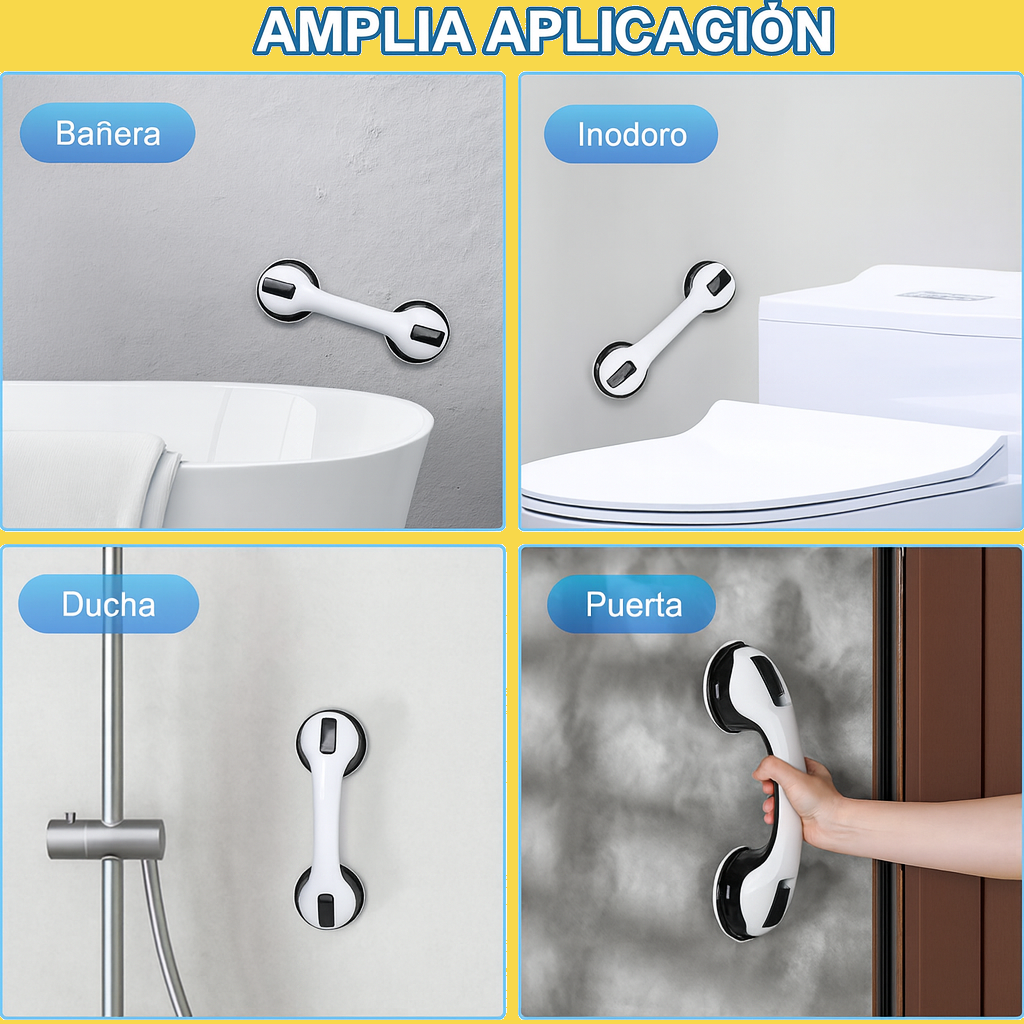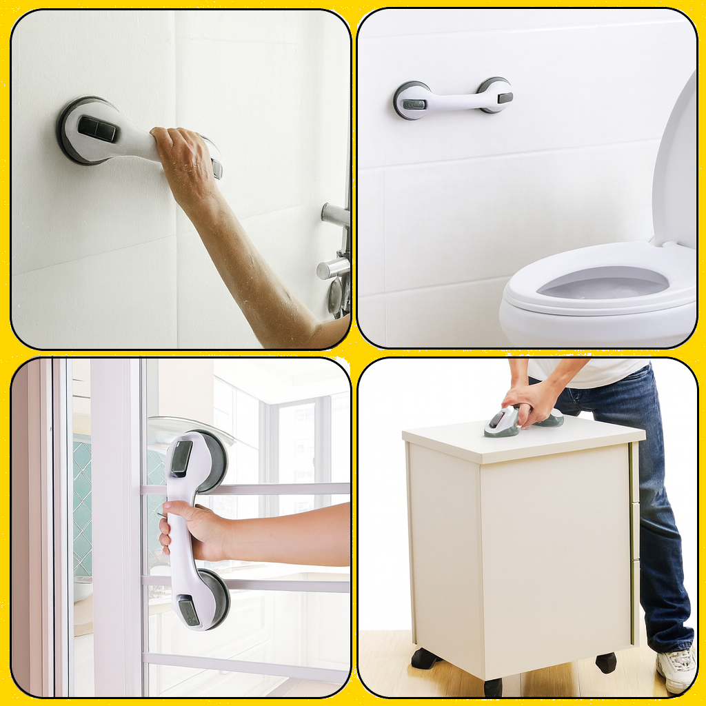 La Manilla de Seguridad no es solo para el baño: es un accesorio multiuso que se fija en segundos a cualquier superficie lisa. Su sistema de ventosas la convierte en una herramienta versátil para brindar apoyo, mover objetos o asegurar estabilidad en distintas áreas del hogar.